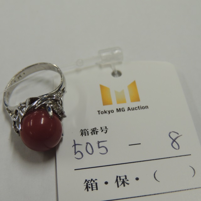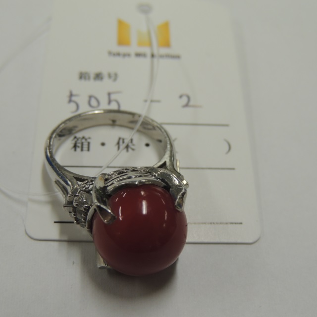 リング 赤サンゴ 12mmup Pt900 11.40g 石目:D0.10