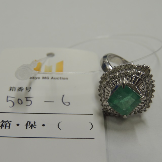 リング エメラルド ダイヤ Pt900 9.10g 石目:E1.84 D0.52