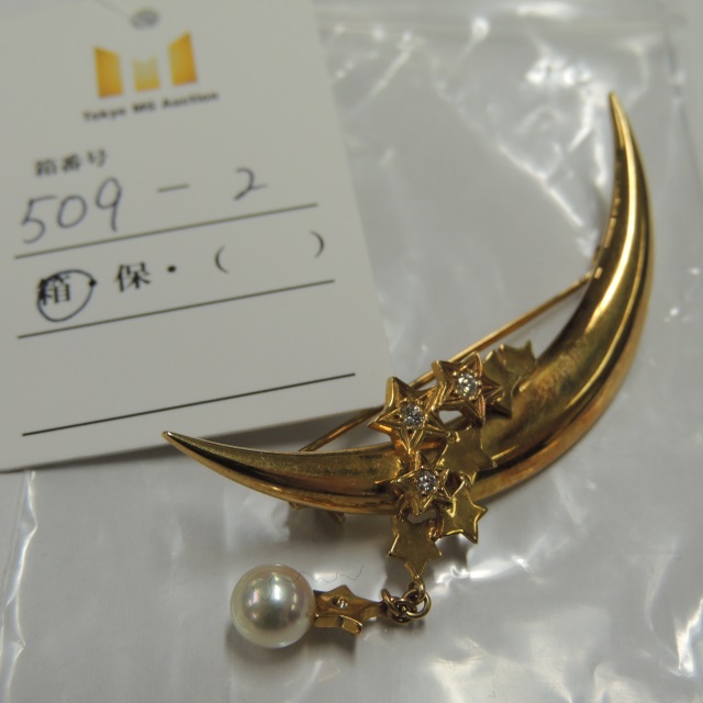 ミキモト ブローチ パール 三日月 K18 8.20g 箱