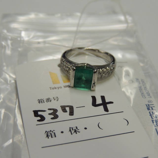 リング エメラルド ダイヤ Pt900 9.40g 中ソ 石目:2.06 D0.28