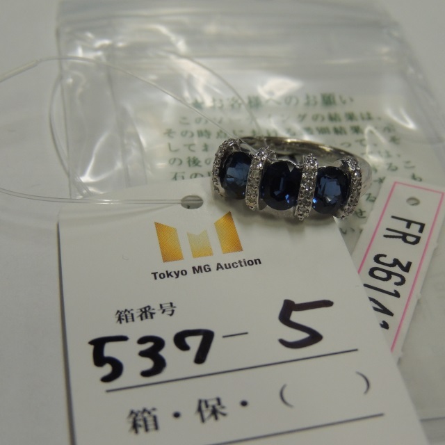 リング サファイア K18WG 6.90g 中ソ 石目:3.167 0.11