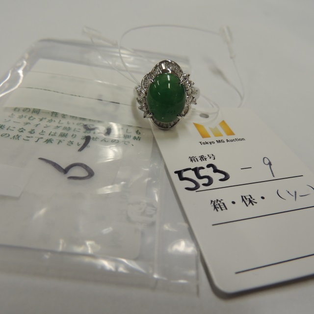 リング ヒスイ ダイヤ Pt900 10.90g 中ソ 石目:5.18 D0.77
