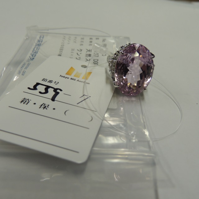 リング クンツァイト ダイヤ Pt900 13.60g 中ソ 石目:27.07 D0.09