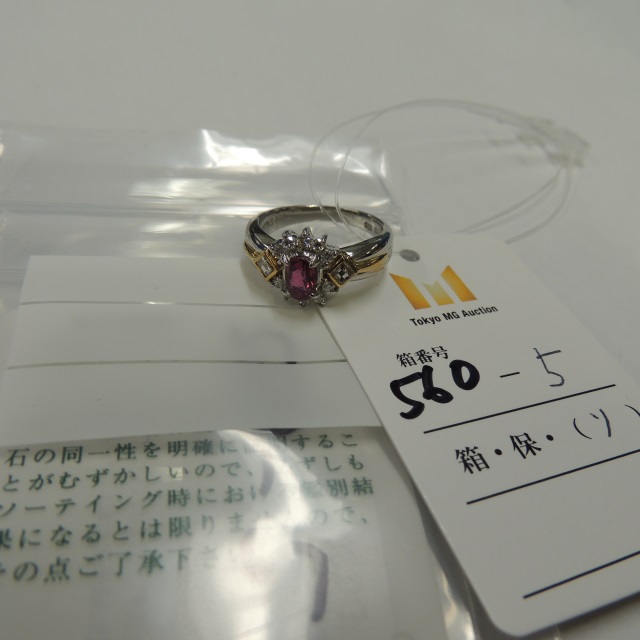 リング ルビー ダイヤ Pt900/K18 7.60g 中ソ 石目:0.60 D0.36