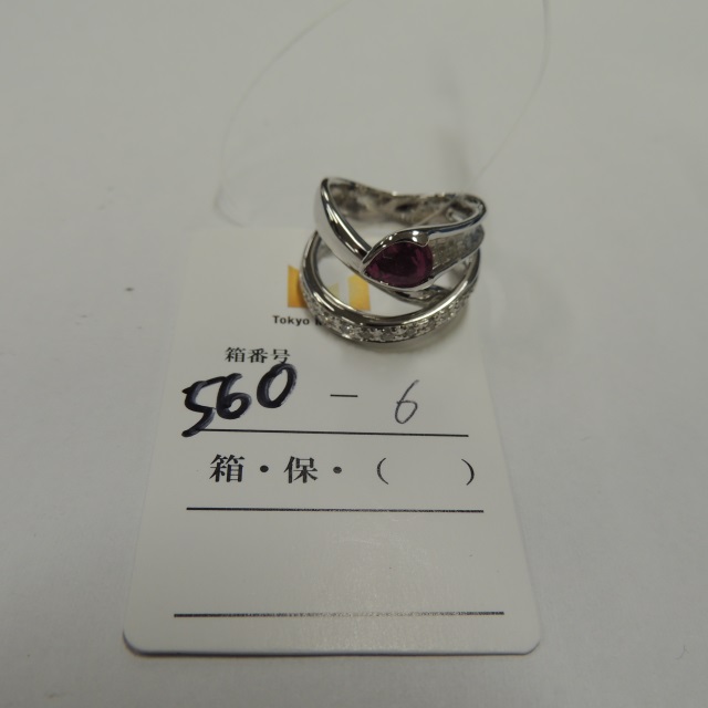 リング ルベライト ダイヤ K18WG 10.30g 石目:1.04 D0.14