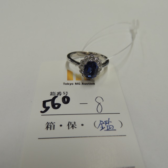 リング サファイア ダイヤ K18WG 4.40g 鑑 石目:0.60 D0.40
