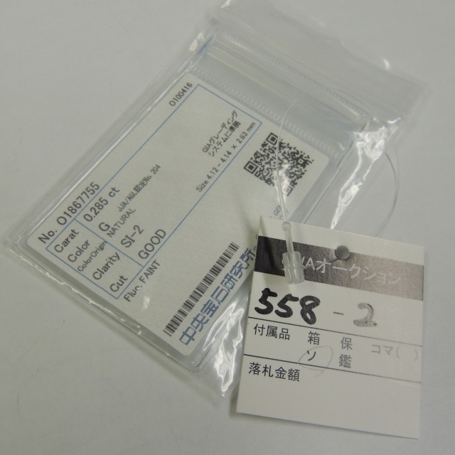 ルース ダイヤ G/SI2/G 中ソ 石目:0.285