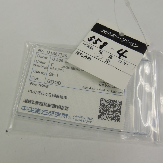 ルース ダイヤ F/SI1/G 中ソ 石目:0.366