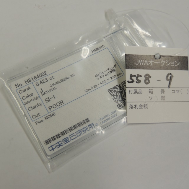 ルース ダイヤ J/SI1/P 中ソ 石目:0.423