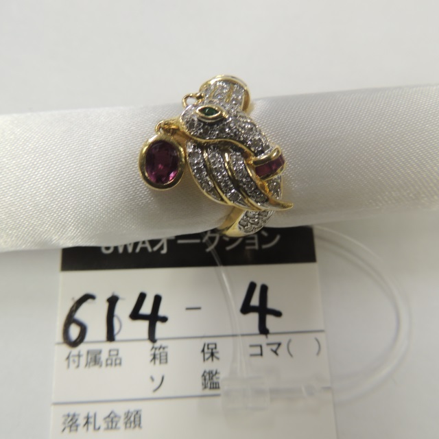 リング ルビー エメラルド K18 7.60g 石目:R0.38 D0.26