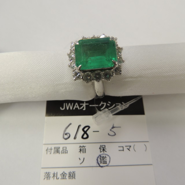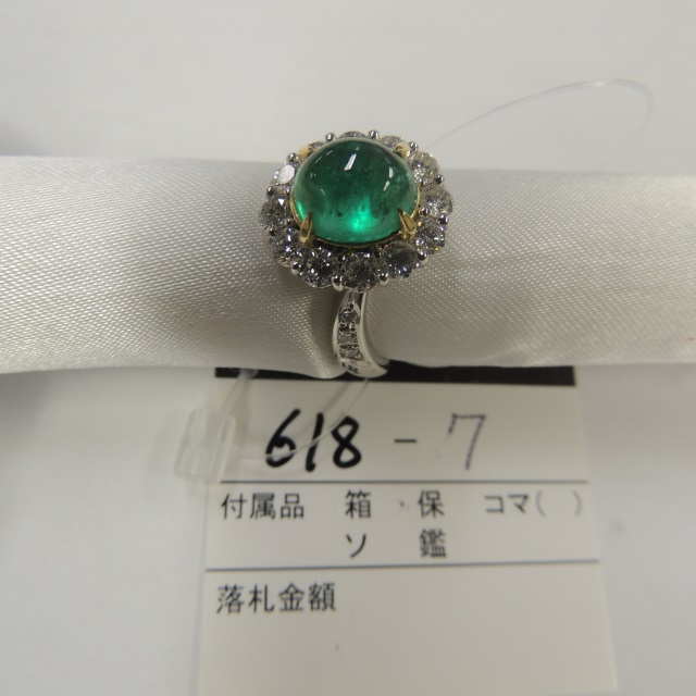 リング エメラルド ダイヤ Pt900 12.30g 鑑 石目:E4.73 D1.57