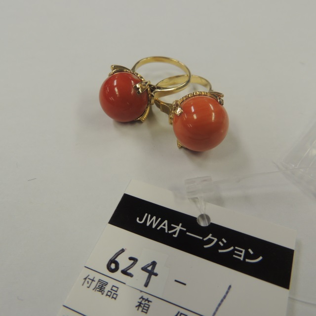 リング 2点 サンゴ 14.4mm 13.8mm K18 17.40g