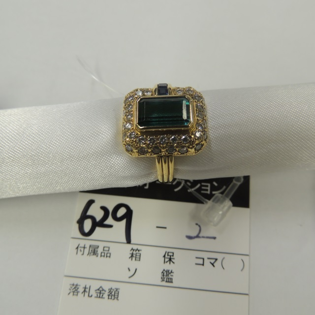 リング グリーントルマリン サファイア ダイヤ K18 7.10g 石目:GT2.95 S0.33 D0.70