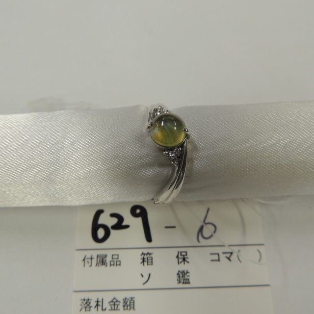 リング クリソベリルキャッツアイ ダイヤ PT900 6.40g 鑑 石目:C2.49 D0.34