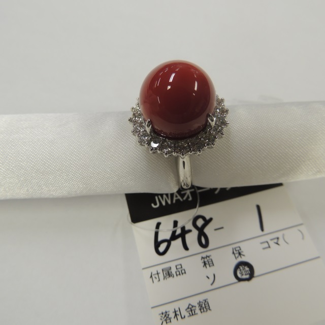 リング 珊瑚 14.5mm ダイヤ Pt900 14.60g 鑑 石目:D1.10