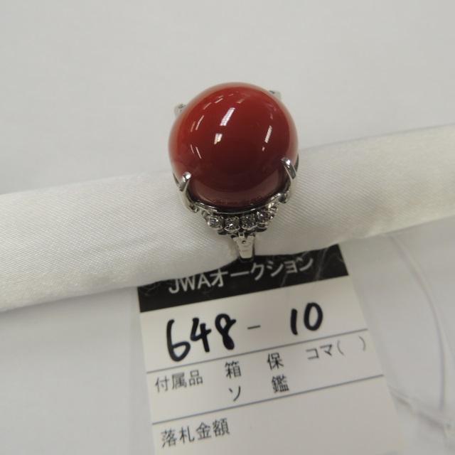 リング 珊瑚 18.3mm ダイヤ Pm900 17.10g 石目:D0.22