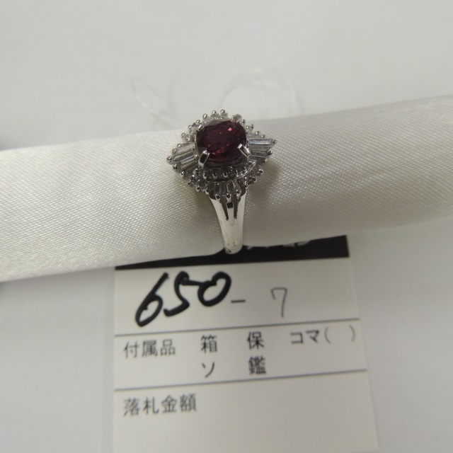 リング 非加熱ルビー ダイヤ Pt900 7.20g 中鑑 石目:R1.02 D0.52