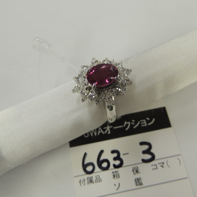リング ルビー非加熱 ダイヤ Pt900 12.00g 中鑑