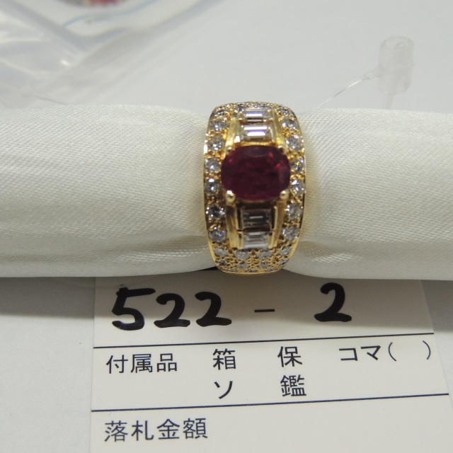 リング ルビー ダイヤモンド K18 8.90g GRJソ 石目:1.570 1.100