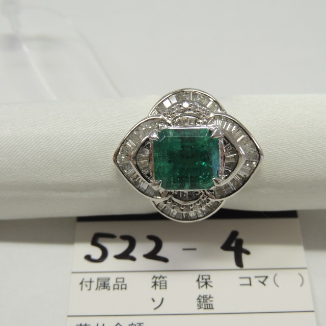 リング エメラルド ダイヤモンド Pt900 13.40g 石目:3.880 1.200