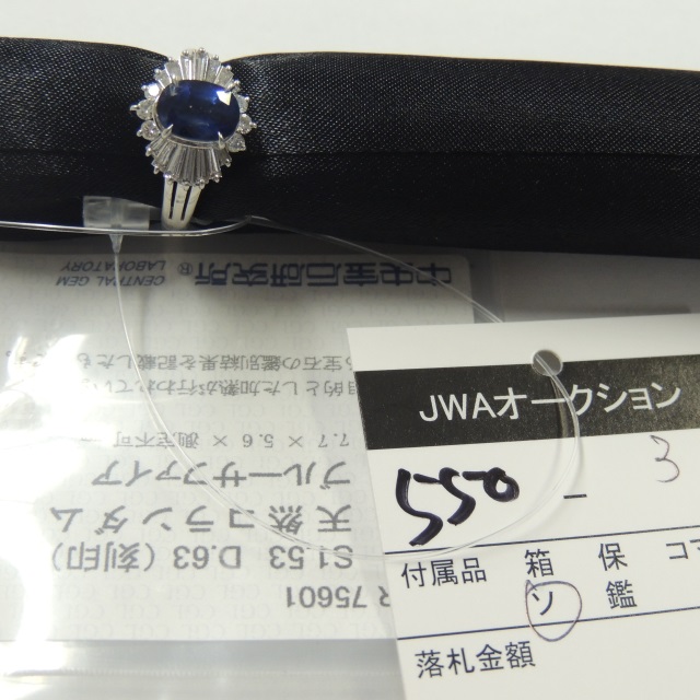 リング 非加熱サファイア ダイヤ Pt900 11.90g 中鑑 石目:1.21 D0.78
