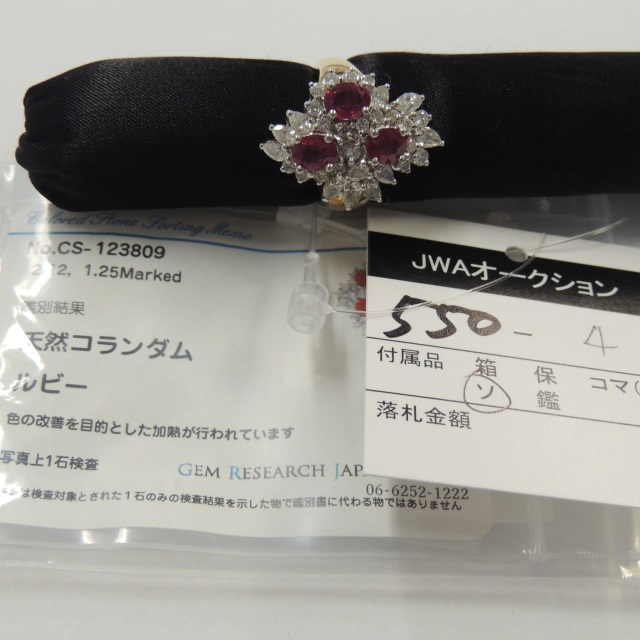 リング ルビー ダイヤ K18 9.00g GRJソ 石目:R1.60 D1.32
