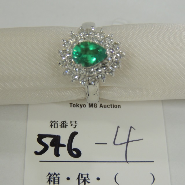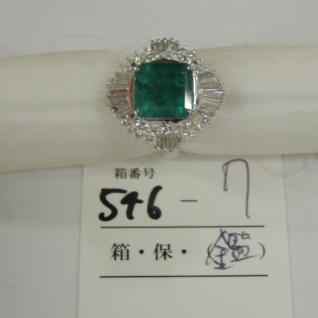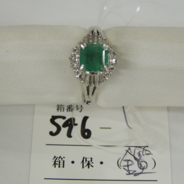 リング エメラルド ダイヤ PT900 5.40g 鑑 石目:1.08 0.35