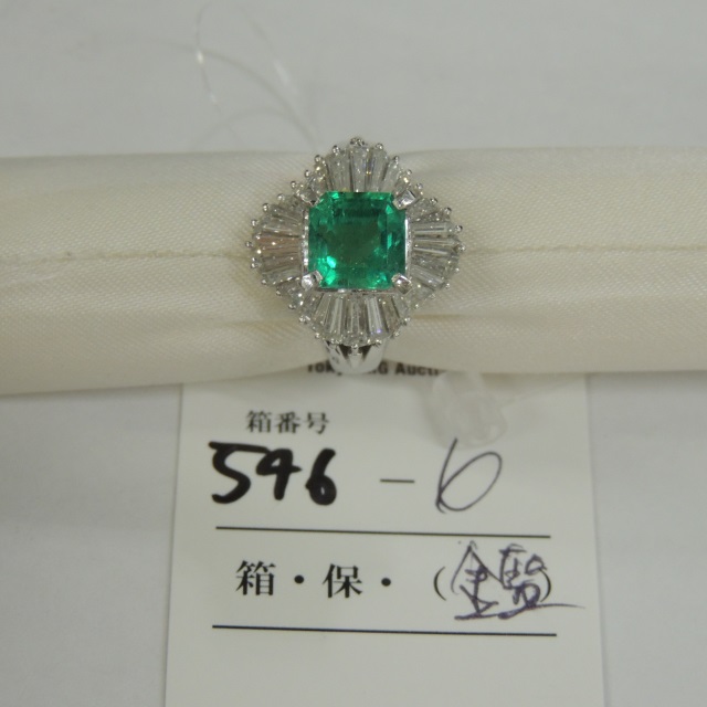 リング エメラルド ダイヤ PT900 10.00g 鑑 石目:1.95 1.33