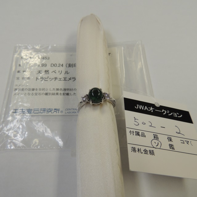 リング トラピッチェエメラルド ダイヤ Pt900 5.30g 中ソ 石目:E1.99 D0.24