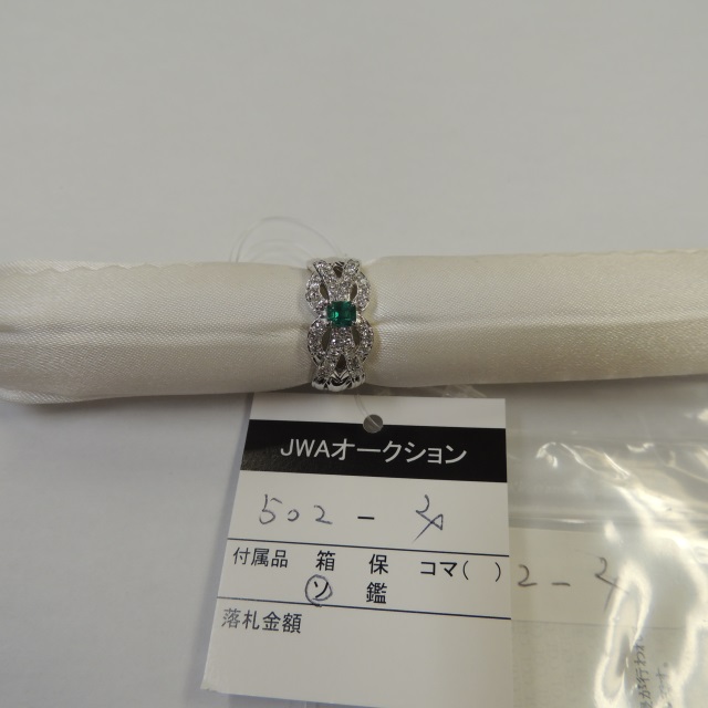 リング エメラルド ダイヤ Pt900 9.30g 中ソ 石目:E0.25 D0.50