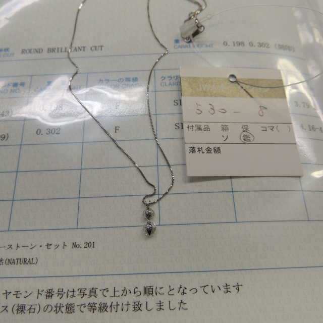 ペン・ネック ダイヤ F/SI2/GOOD Pt850 1.80g 中鑑 石目:D0.302 D0.198