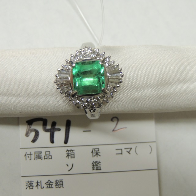リング エメラルド ダイヤ Pt900 10.40g 石目:E2.02 D0.62