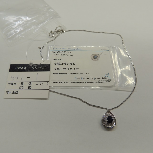 ペン・ネック ブルーサファイア ダイヤ Pt900/850 6.90g GRJソ 石目:0.610 0.210