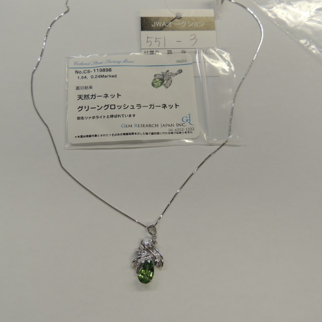ペン・ネック グロッシュラーガーネット ダイヤ K18WG 5.50g GRJソ 石目:1.54 0.24