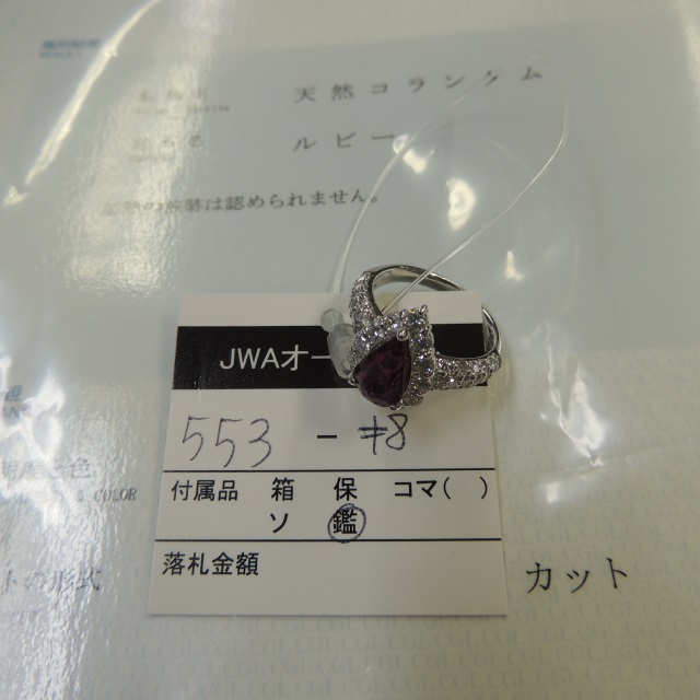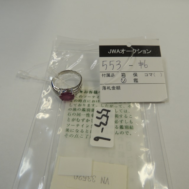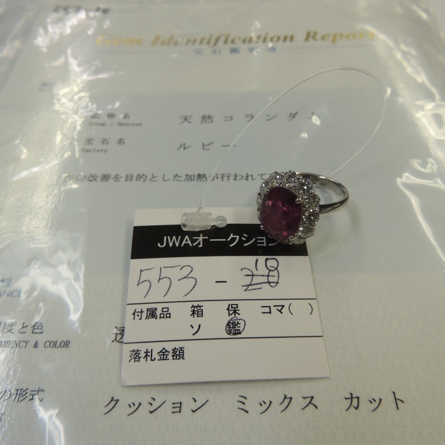リング 非加熱ルビー ダイヤ Pt900 7.00g 中鑑 石目:2.007 1.130