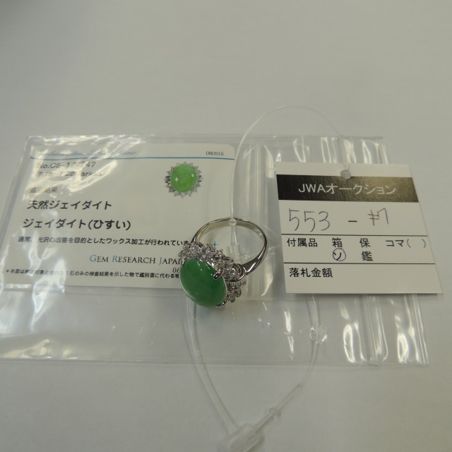リング ヒスイ ダイヤ Pt900 9.30g GRJソ 石目:7.18 1.22