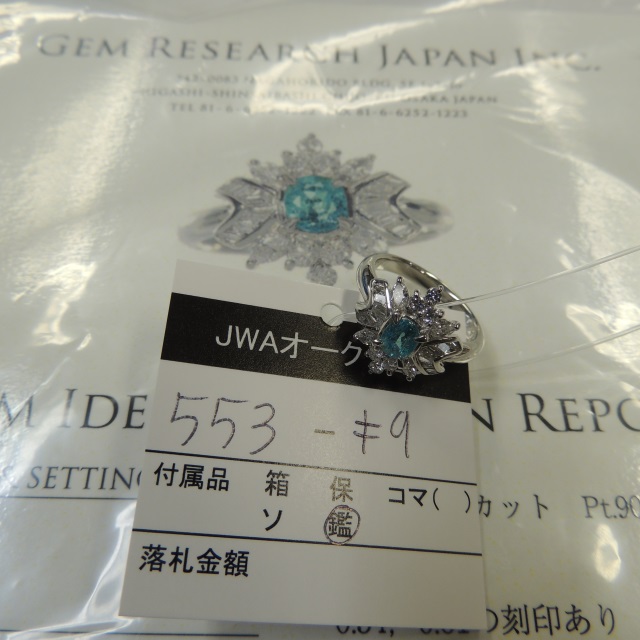 リング パライバトルマリン ダイヤ Pt900 7.10g GRJ鑑 石目:0.54 0.61