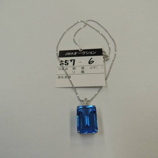 ペン・ネック ブルートパーズ ダイヤ K18WG 10.10g 石目:20.17 0.08