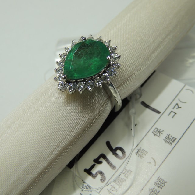 リング エメラルド ダイヤ Pt900 13.90g 石目:E3.62 D1.30.