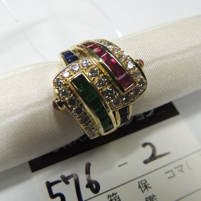 リング エメラルド ルビー サファイア ダイヤ K18 11.60g 石目:1.99 D0.84