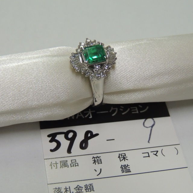 リング エメラルド ダイヤ Pt900 7.20g 中鑑 石目:2.07 D0.50