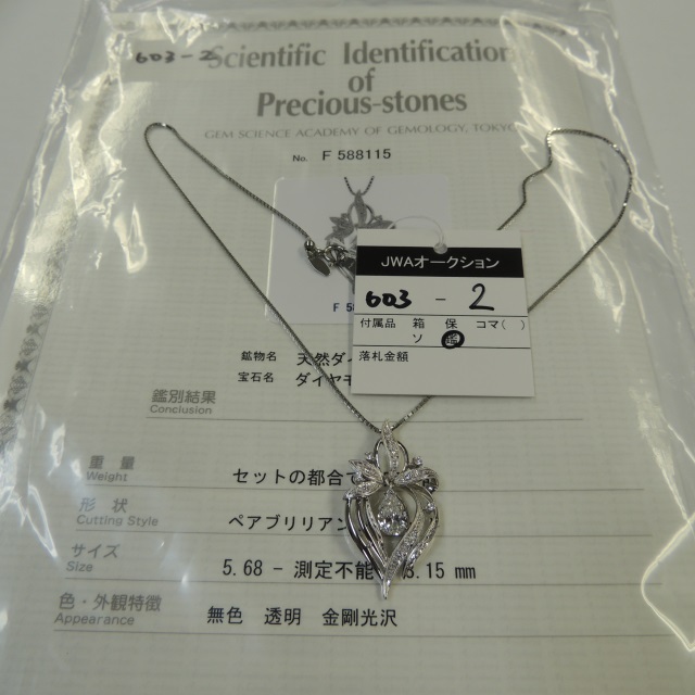 ペン・ネック ダイヤ Pt850 12.00g 鑑
