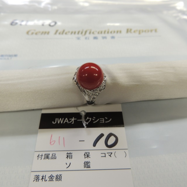 リング サンゴ 11mm ダイヤ Pt900 8.80g 中鑑 石目:0.20