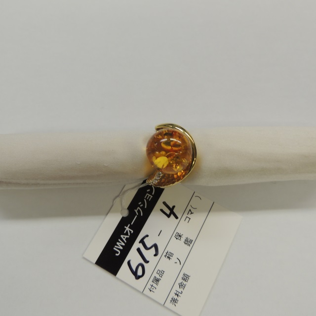 リング 琥珀 ダイヤ K18 14.50g 石目:0.12