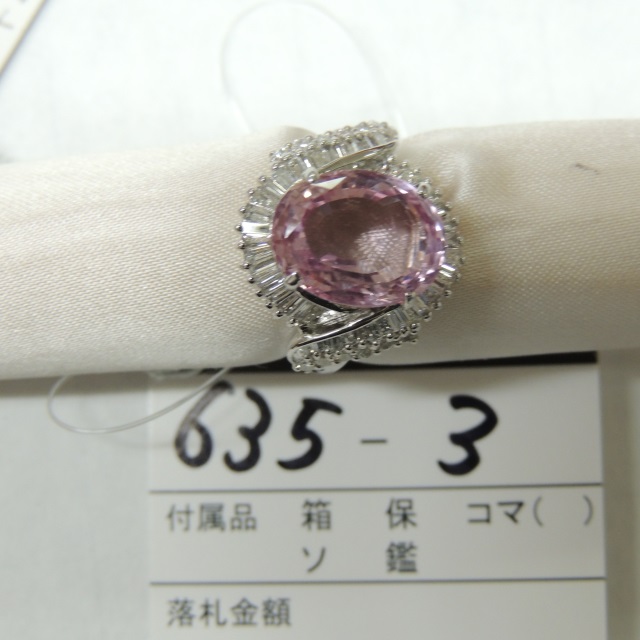 リング ピンクサファイア ダイヤ Pt900 9.00g 鑑 石目:6.37 0.77