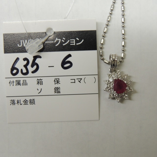 ペン・ネック ルビー ビルマ産 ダイヤ Pt900/850 8.60g 鑑 石目:1.08 0.68