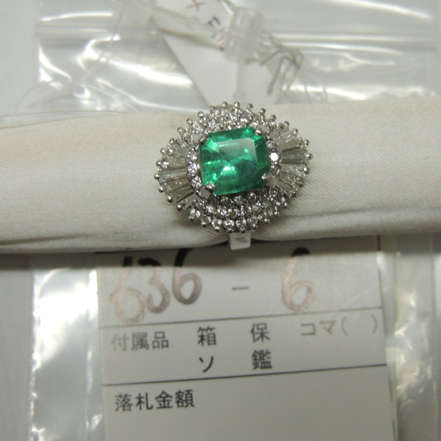 ペントップ エメラルド ダイヤ Pt900 4.70g 鑑 石目:2.23 1.55
