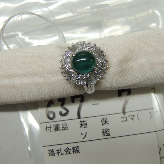 リング エメラルド ダイヤ イニシャル入 Pt900 9.00g ソ 石目:1.36 0.77