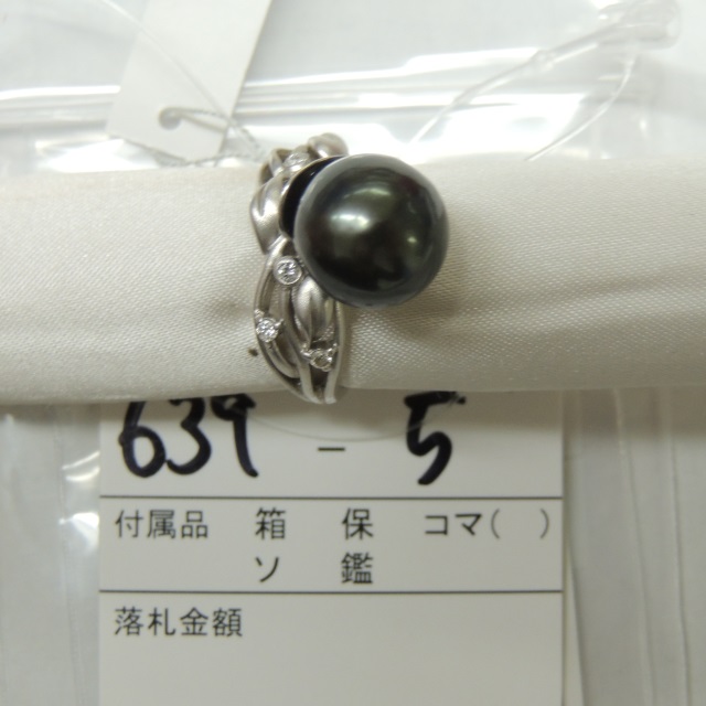 リング 黒蝶パール 11mm ダイヤ K18WG 6.90g ソ 石目:0.08
