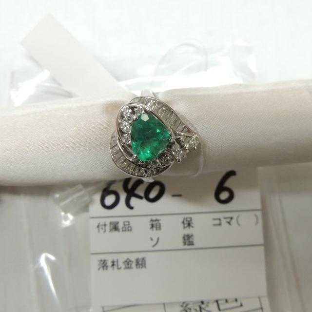 リング エメラルド ダイヤ Pt900 6.60g ソ 石目:1.501 0.6
